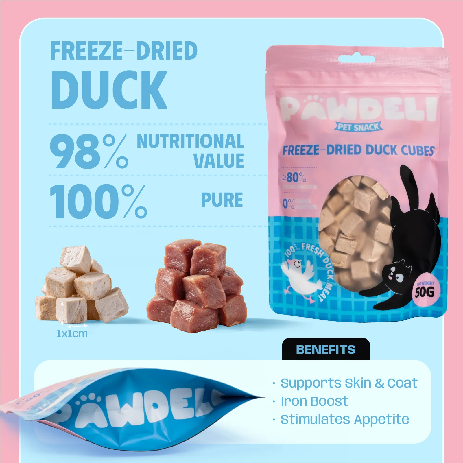 High-quality protein rich in Omega 3 & 6 helps maintain shiny, smooth and healthy coat. Abundant Iron supplement supports blood formation and energy. 100% pure freeze-dried meat with delicious natural flavor stimulates appetite, making it the perfect choice for picky cats.